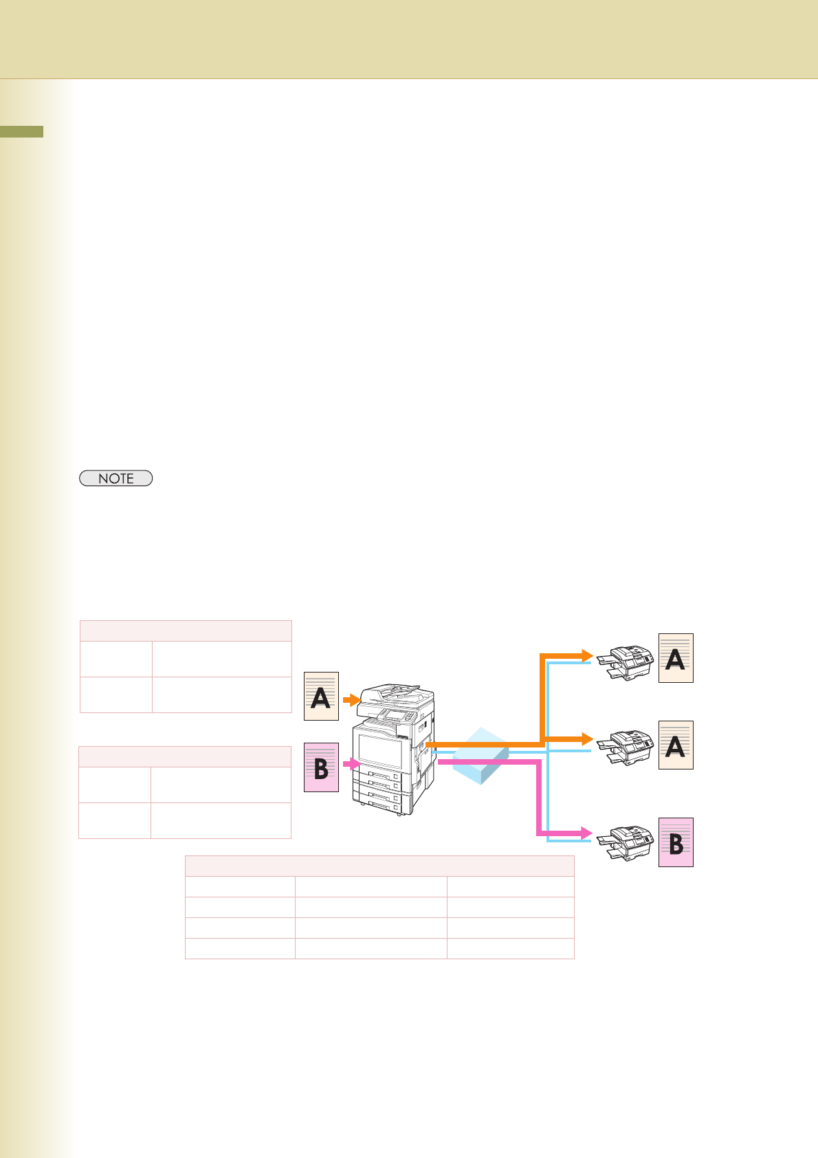 • A centre machine supporting the Memory feature is required on the fax network to implement sub-