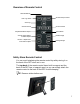 Overview of Remote Control Start Slideshow Exit or go back Access Setup screens Scroll Up Scroll Previous Play/Pause/Select object Scroll Forward Scroll Down Volume adjust higher or Select object Rotate image Volume - adjust lower or De-select object Enlarge image Safely Store Remote Control You can avoid misplacing the remote control by safely storing it on the back of the DPF when not in use.