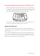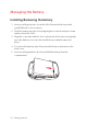 Managing the Battery Installing/Removing the battery 1. Insert your finger tip into slot at the left of the mobile hotspot and gently lift back cover to remove. 2. Slide the battery into the slot by aligning the contacts and press down until you hear the “click”. 3. Align the cover tabs with the slots on the back of the device and gently press the battery cover onto the mobile hotspot until it snaps into place. 4. To remove the battery, turn off your mobile hotspot and remove the back cover. 5.
