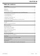 Table des matières Introduction . . . . . . . . . . . . . . . . . . . . . . . . . . . . . . . . . . . . . . . . . . . . . . . . . . . . . . 2 Utilisation conforme à l'usage prévu . . . . . . . . . . . . . . . . . . . . . . . . . . . . . . . . . . . . . . . . . . . . . Équipement. . . . . . . . . . . . . . . . . . . . . . . . . . . . . . . . . . . . . . . . . . . . . . . . . . . . . . . . . . . . . . . . . Matériel livré . . . . . . . . . . . . . . . . . . . . . . . . . . . . . . . . . . . . . . . . . . . .