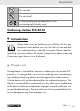 Warranty / Disposal The warranty is void in the case of abusive and improper handling, use of force and internal tampering not carried out by our authorized service branch. Your statutory rights are not restricted in any way by this warranty. The warranty period will not be extended by repairs made unter warranty. This applies also to replaced and repaired parts.