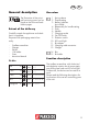 FI Sisältö Alkusanat Alkusanat................................... 16 Käyttötarkoitus........................... 16 Yleinen kuvaus........................... 17 Toimituksen laajuus.......................... 17 Übersicht....................................... 17 Toiminto......................................... 17 Tekniset tiedot............................. 18 Turvallisuusmääräykset.............. 18 Symbolit ja kuvat............................ 18 Yleiset turvallisuusviitteet..................