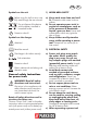 FR Symbole d’interdiction (l’interdiction est précisée à la place des guillemets) et indications relatives à la prévention de dommages. Symboles de remarque et informations permettant une meilleure utilisation de l‘appareil. Pictogrammes sur l‘appareil : Lisez attentivement les instructions d’emploi. Ne jetez pas l’appareil avec les accumulateurs encore montés dans les ordures ménagères. III Classe de protection III Symboles sur le chargeur : Attention ! Lisez attentivement les instructions d’emploi.