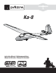 EN The Ka-8 Thank you for purchasing the ParkZone® Ka-8 sailplane. Many a full-scale pilot has taken their first single-seat sailplane flight at the controls of a Ka-8. Its friendly flight characteristics and impressive thermal performance make it the perfect next step for newly licensed pilots eager to stretch their wings. The ParkZone Ka-8 sailplane brilliantly captures the grace of this pre-composite era beauty. Like the full-scale Ka-8, it delivers a relaxing flying experience free of any bad habits.