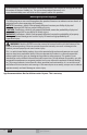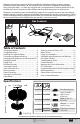 Troubleshooting Guide (continued) Possible Cause Problem Solution Controls reversed Transmitter settings reversed Do the Control Direction Test and adjust controls on transmitter appropriately Motor loses power Damage to motor or power components Do a check of motor and power components for damage (replace as needed) Nut on prop shaft is too tight Loosen prop shaft nut until propeller shaft turns freely Motor power Battery power is down to the point of quickly decreas- receiver/ESC Low Voltage Cuto