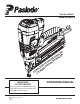 Safety Instructions The following safety instructions have been included in this booklet to provide you with basic information necessary for safe operation of the Paslode Cordless 16 ga. Angled Lithium-ion Finish Nailer. DO NOT ATTEMPT TO OPERATE THIS TOOL UNTIL YOU HAVE READ AND UNDERSTAND ALL SAFETY PRECAUTIONS AND MANUAL INSTRUCTIONS. DANGER The Cordless Finish Nailer is an internal combustion device. It produces hot exhaust gases that may ignite flammable materials.