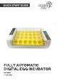 Tasting incubator for the Set tne Bet up the incubator as per Installation 2. Tum the incubator on. 3. Anomalous indicating low ternperature/humidity will sound, this is normal: press any button to cancel the alumna. 4. Operate the incubator and fill the water channels: the humidity reading will Increase. 5, Place the egos In the incubator with the narrower end facing down, 6.