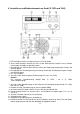 3. Controls and Indications (P 1565 and P 1575) 1. 2. 3. 4. 5. 6. LED panel meter display with CC/CV Indictor Rear Control Indicator (lights up when using Preset/ Remote Control/ Set mode) Output Voltage Control Knob (control both the main and auxiliary output voltage) Output Current Control Knob (control both the main and auxiliary output current limit) Power ON/OFF Switch Aux. output terminal (max 5A) Note : The total rated current is 40 A (P 1565) resp. 20 A (P 1575) (Aux.+Main) 7. 8. 9. 10. 11. 12.