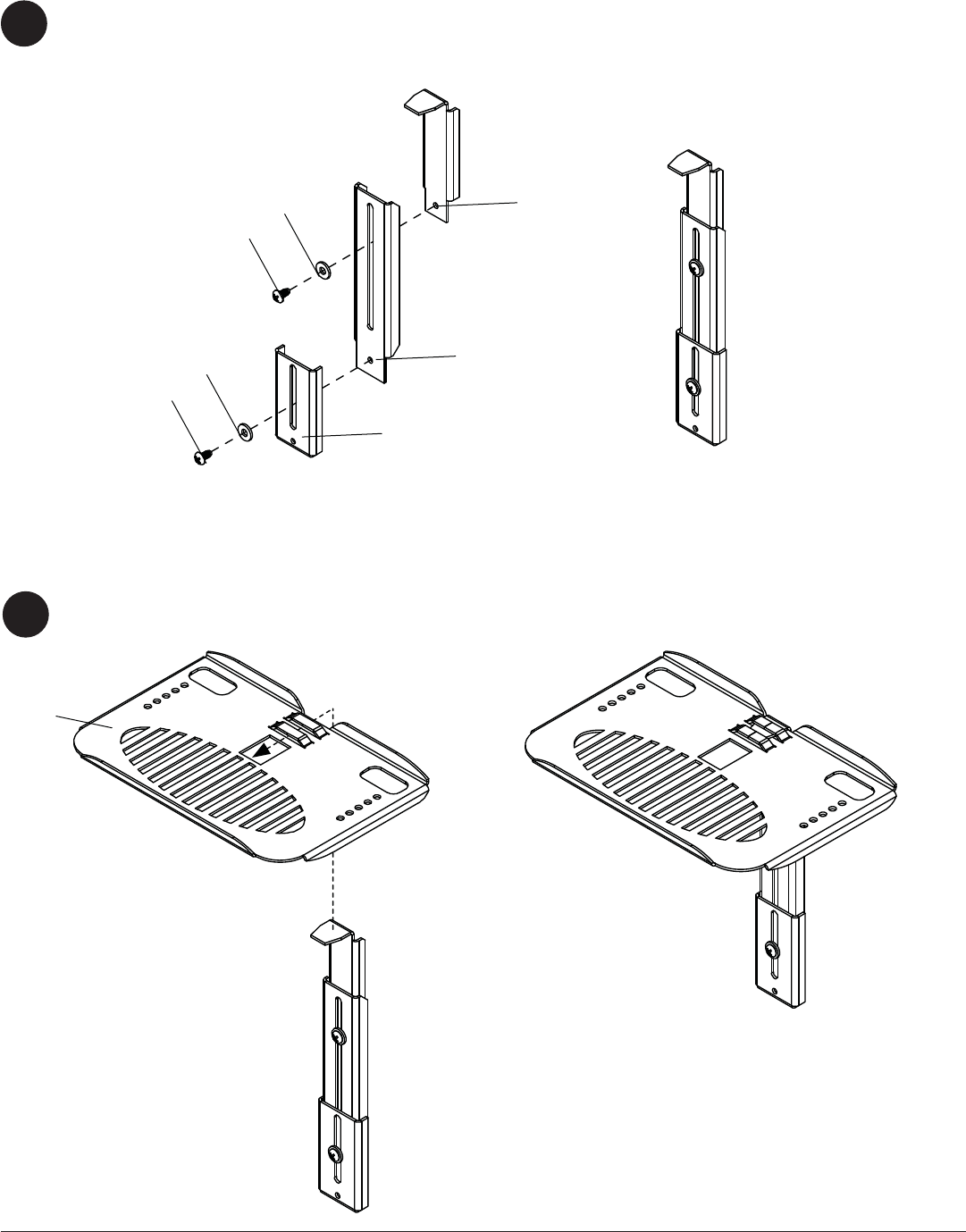 Connect mount bracket (B), adjustment bracket (D) and shelf bracket (C) with two screws (E) and two washers (F)