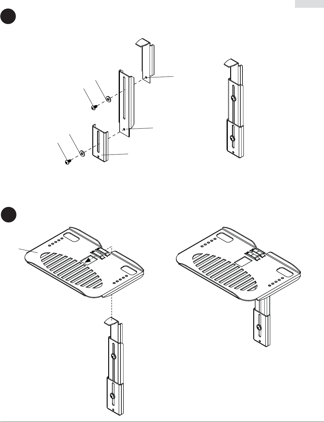 Conectar soporte de montaje (B), el ajuste de soporte (D) y la plataforma soporte (C) con dos tornillos (E) y dos