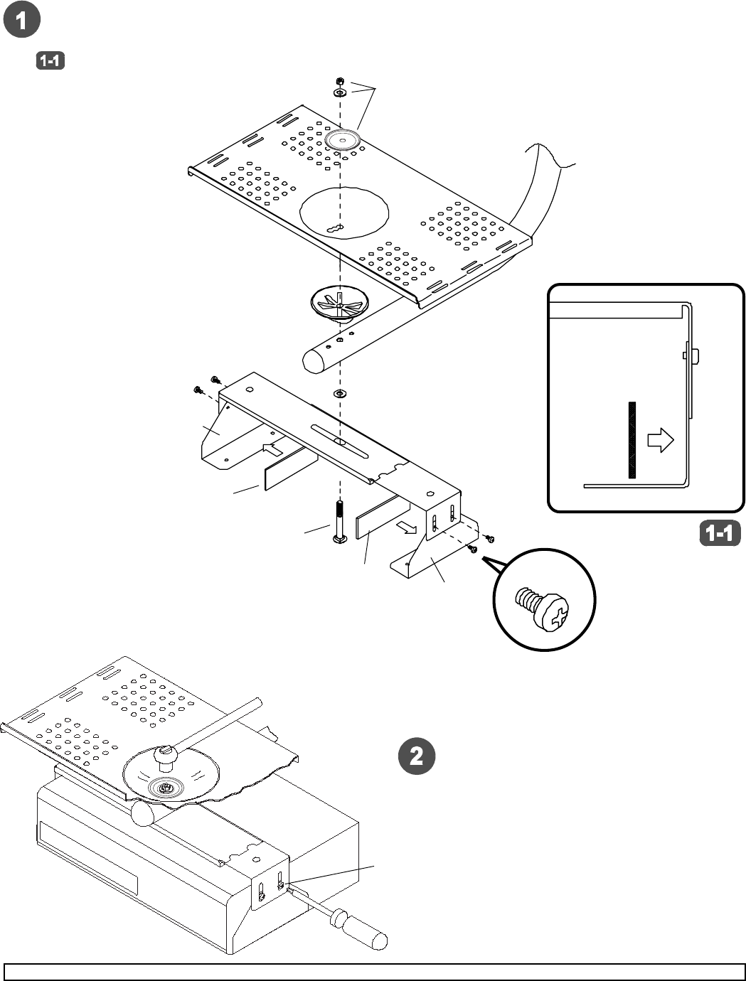 Assemble and attach VCR Mount to TV Mount as shown. Leave screws (E) and lock nut slightly loose to allow for