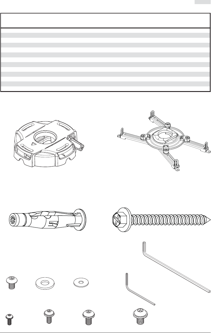 Avant de commencer, veuillez vous assurer que toutes les pièces énumérées sont incluses.