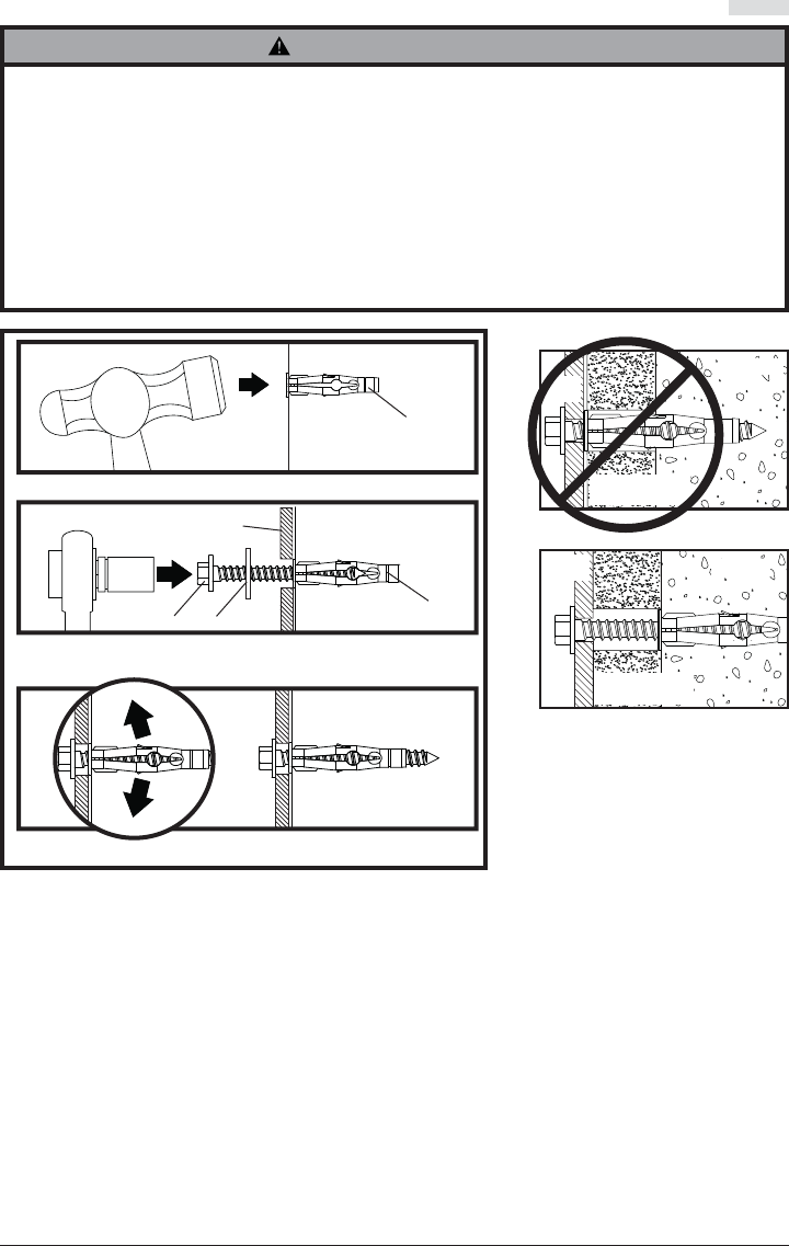 • Ne fi xez jamais d’ancrages sur du béton recouvert de plâtre, une cloison sèche ou autre matériau