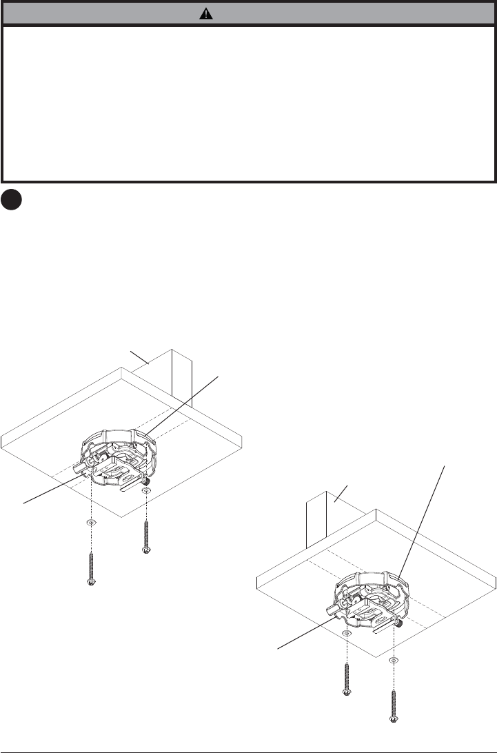 • Tighten wood screws so that wall plate is fi rmly attached, but do not overtighten. Overtightening