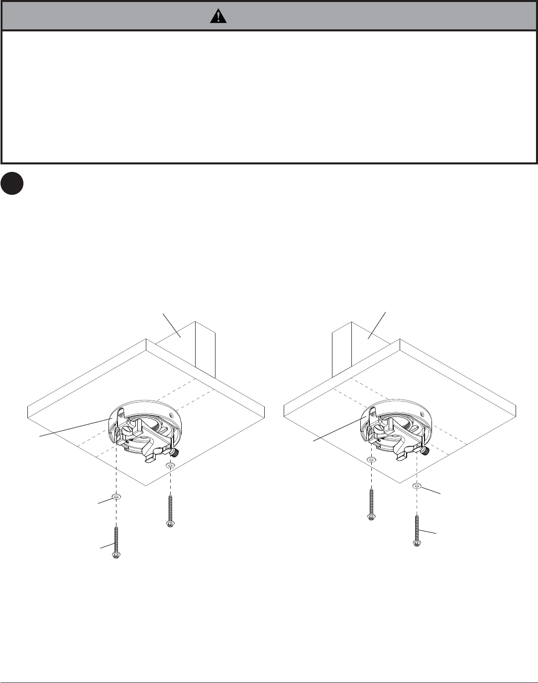• Tighten wood screws so that projector mount assembly is fi rmly attached, but do not overtighten. Overtightening
