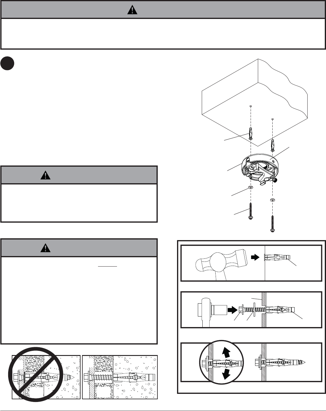 • Concrete must be 2000 psi density minimum. Lighter density concrete may not hold concrete anchor.