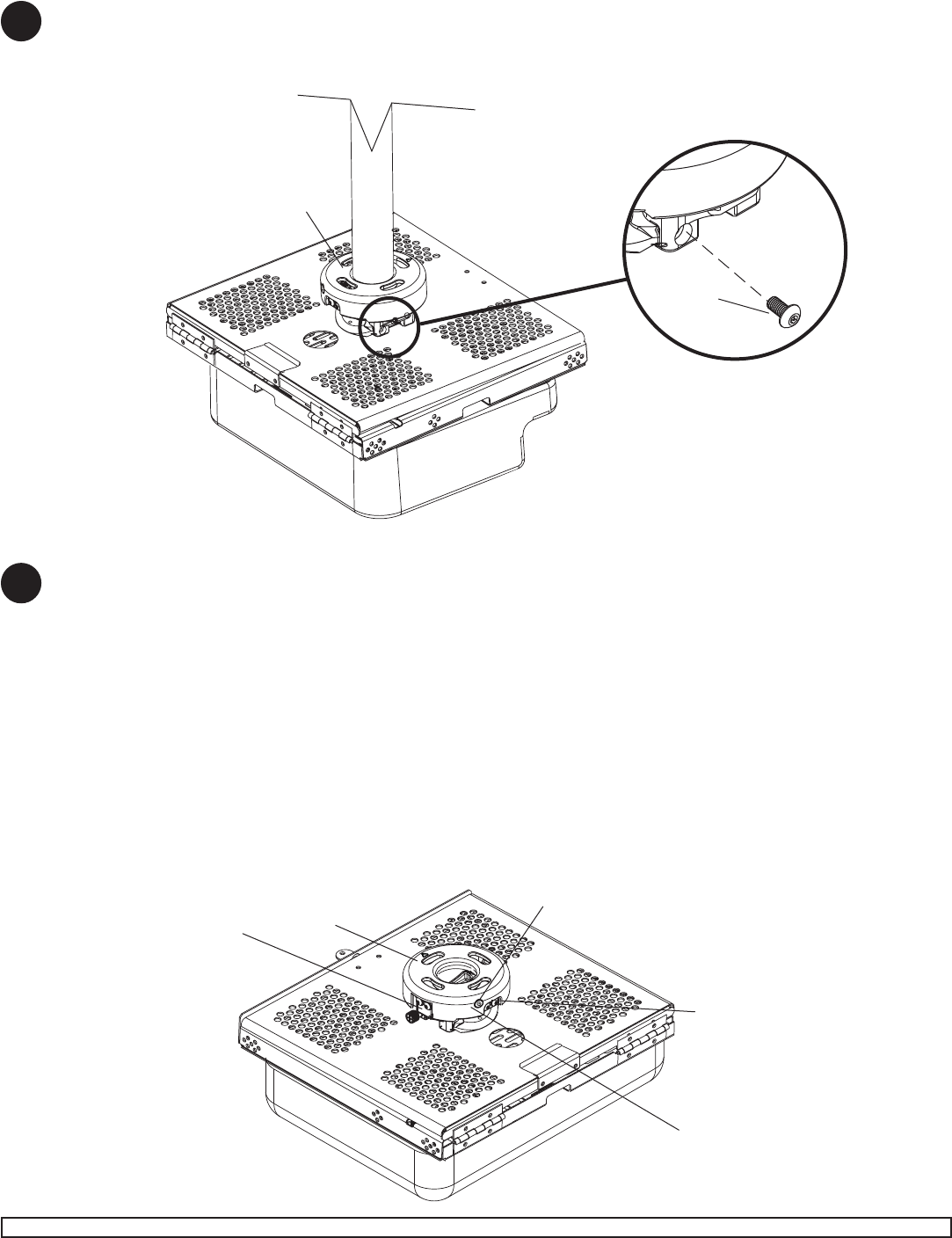 cated below until projector mount can be rotated. Rotate mount to desired position and retighten screw.