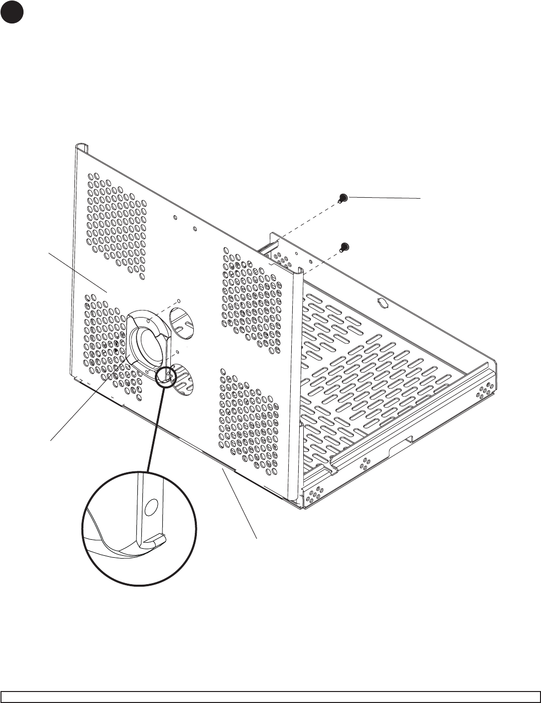 to tray (B) using two #10-32 x 3/8" serrated washer head socket pin screws (E) as shown.