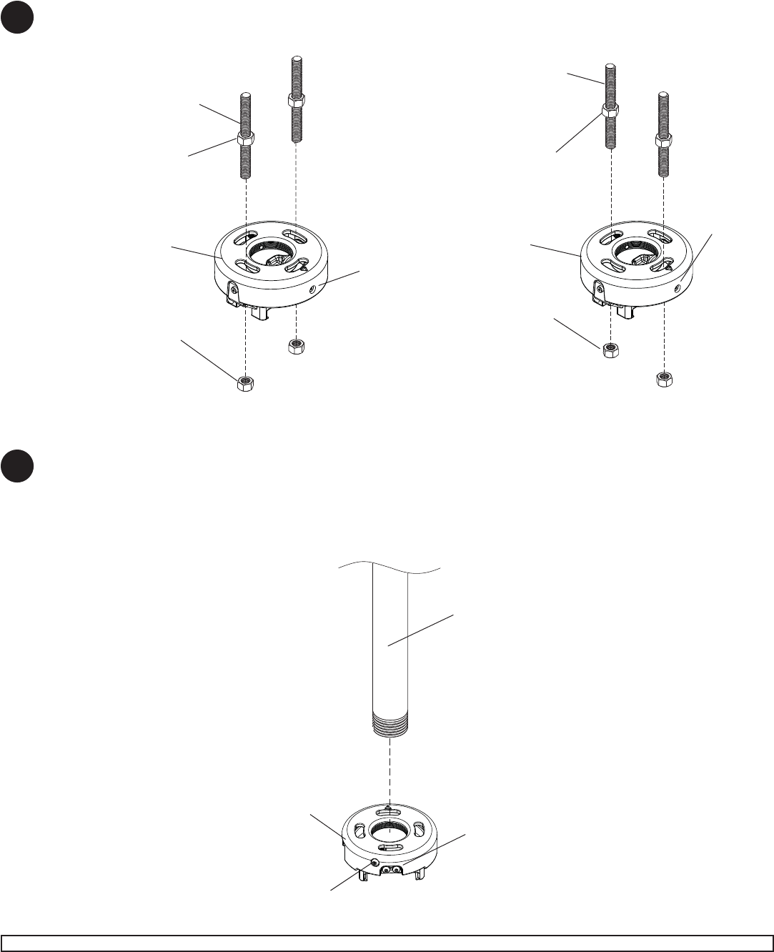 desired height of projector mount assembly. Attach projector mount assembly (A) to two 3/8-16 threaded rods using