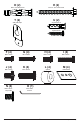 D (2) E (2 ) 8mm concrete anchor #14 x 2-1/2" wood screw T (2) U (2) wall plate clips drywall anchor drywall screw F (4) G (4) H (4) I (4) M5 x 12mm M5 x 25mm M6 x 12mm M6 x 25mm J (4) K (4) L (4) M (4) M8 x 12mm M8 x 25mm spacer multiwasher N (4) M8 x 12mm low profile O (1) 4mm allen wrench 9 2017-03-15 #:204-9063-3 (2017-08-10)