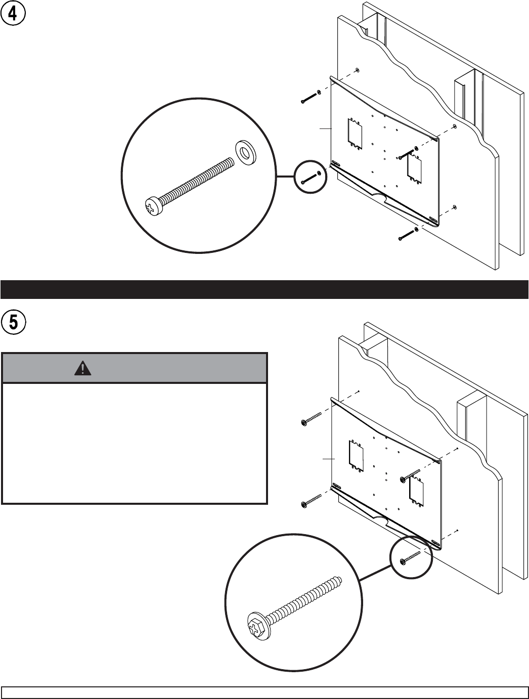 FOR WOOD STUD WALLS ONLY drill four 5/32" (4 mm)