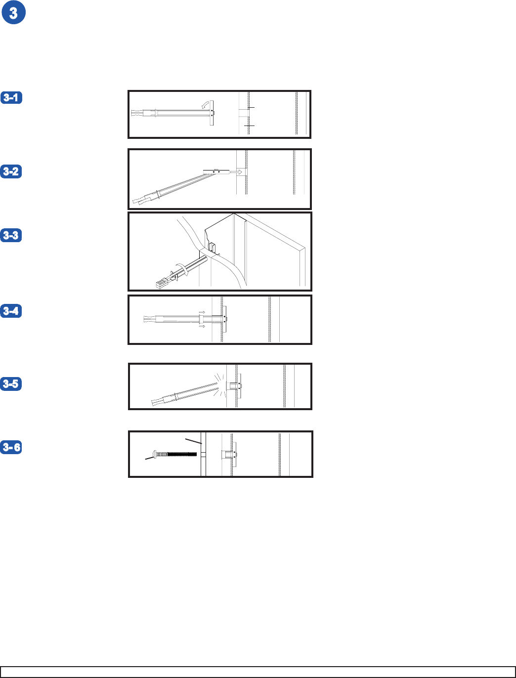 Drill 1/2" (13mm) dia. holes through drywall and studs at locations corresponding to wall plate. Insert togglers (D)