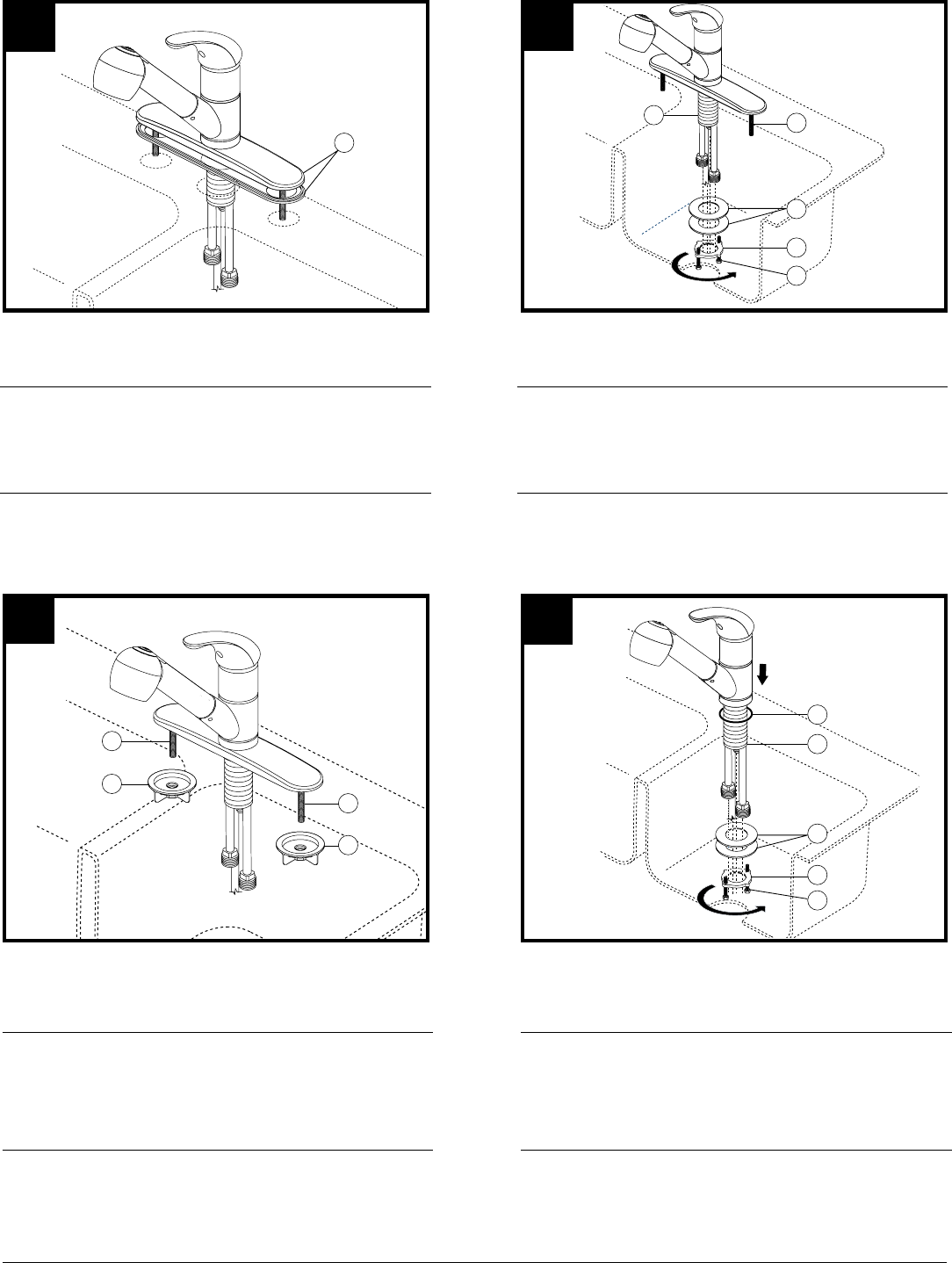 seated under the escutcheon, and place the faucet over the mounting holes.