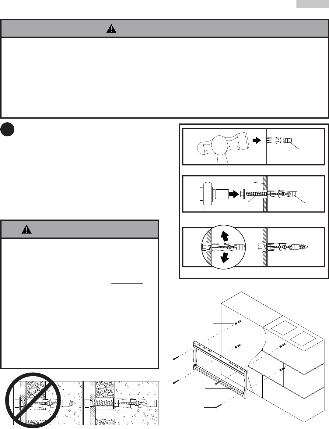 • Si vous installez des montures murales Peerless sur un bloc de béton de mâchefer, vérifi ez que vous disposez d’une