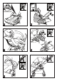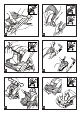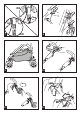38• Fijar el cubrepies en el respaldo y abrochar a los lados como indica la figura. PLÁSTICO DE LLUVIA 39• Para montar el plástico de lluvia hay que unir la cremallera del mismo a la de la capota. 40• La figura muestra el plástico de lluvia ya montado en Pramette, en la versión silla de paseo. 41• La figura muestra dónde hay que enganchar el botón y la goma del plástico de lluvia en Pramette en la versión silla de paseo.