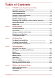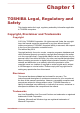 Table of Contents Chapter 1 TOSHIBA Legal, Regulatory and Safety Copyright, Disclaimer and Trademarks .............................................. 1-1 Regulatory Information ......................................................................... 1-2 Video Standard Notice .......................................................................... 1-7 OpenSSL Toolkit License Issues ......................................................... 1-8 FreeType License Issues .......................................