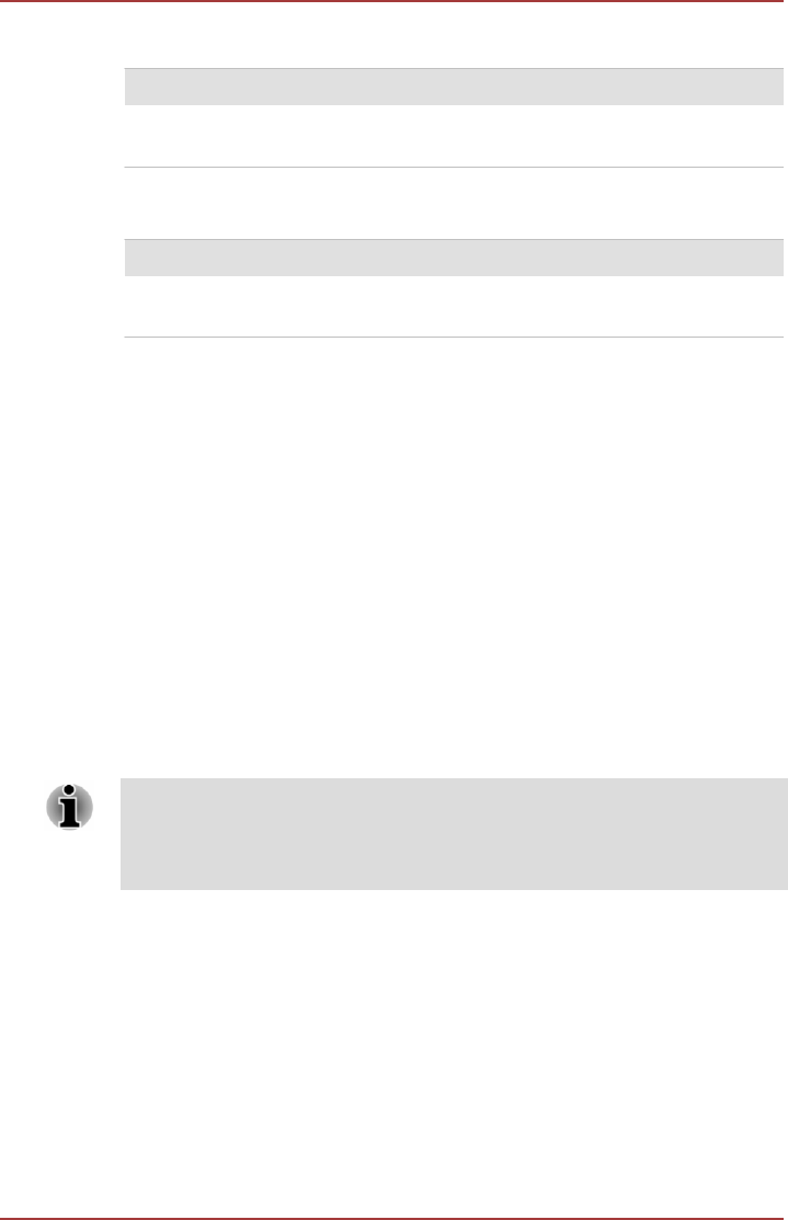Problem Procedure Computer shuts down automatically. Leave the computer off until the it reaches room temperature. If the computer has reached room temperature and it still does not start, or if it starts but shuts down quickly, contact TOSHIBA Support. AC power Problem Procedure AC adaptor doesn’t power the computer Check the connections to make sure that the Micro-USB cable/adaptor is firmly connected to the computer and a working power outlet. Check the condition of the cable and terminals.