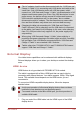 While data is being read or written. While communication is being carried out. Selecting HD Format To select the display mode, follow the steps as detailed below: 1. 2. Tap Desktop Assist -> Control Panel -> Appearance and Personalization -> Display -> Change display settings -> Advanced settings -> List All Modes under TOSHIBA group in the Apps view. Select one of the modes at List All Modes.