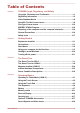 Table of Contents Chapter 1 TOSHIBA Legal, Regulatory, and Safety Copyright, Disclaimer and Trademarks .............................................. 1-1 Regulatory Information ......................................................................... 1-2 Video Standard Notice .......................................................................... 1-8 OpenSSL Toolkit License Issues ......................................................... 1-8 FreeType License Issues ......................................