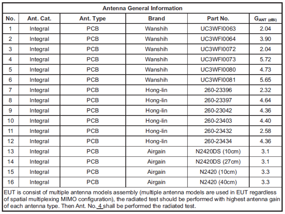 Antennatypesnotincludedinthislist,havingagaingreaterthanthemaximumgainindicatedfor