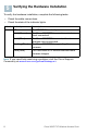 5 Verifying the Hardware Installation To verify the hardware installation, complete the following tasks: • Check the cable connections. • Check the state of the indicator lights. Label Power Activity Off Solid (Green) Solid (Blue) Flashing (Blue) Solid (Red) Description The WAP571E is out of power. The Cisco WAP571E is normal; no wireless client connected. The Cisco WAP571E is normal; at least one wireless client connected. The Cisco WAP571E is upgrading the firmware.