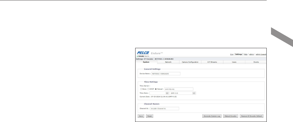 One input field for the channel on the encoder to allow specification of channel / camera name.