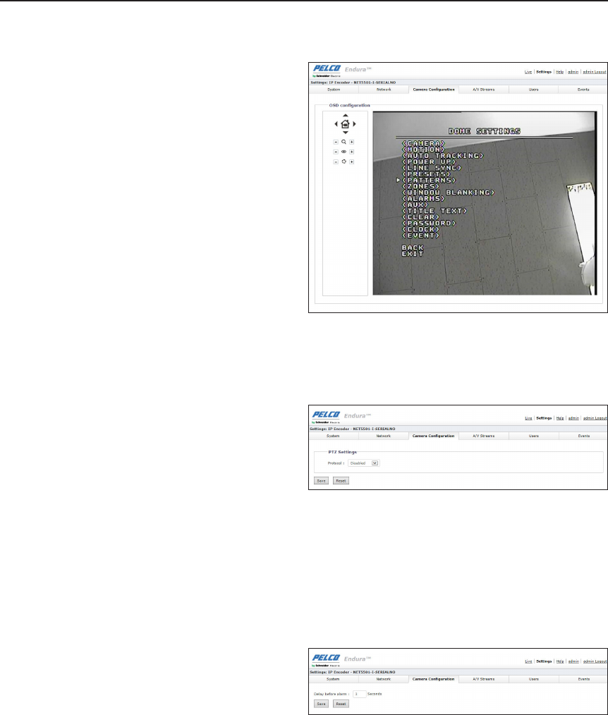Patterns and presets can be configured directly from the OSD for third-party cameras that support these features.