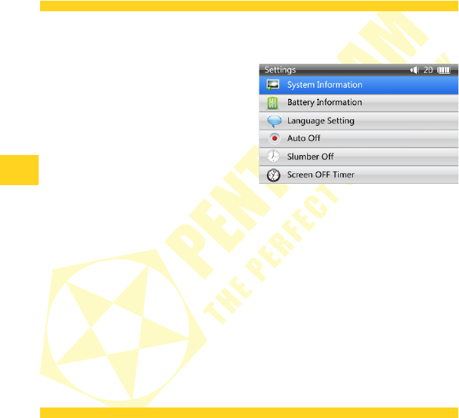 Po wybraniu tego elementu z głównego menu urządzenia zmieniona zostanie jasność wyświetlacza odtwarzacza.