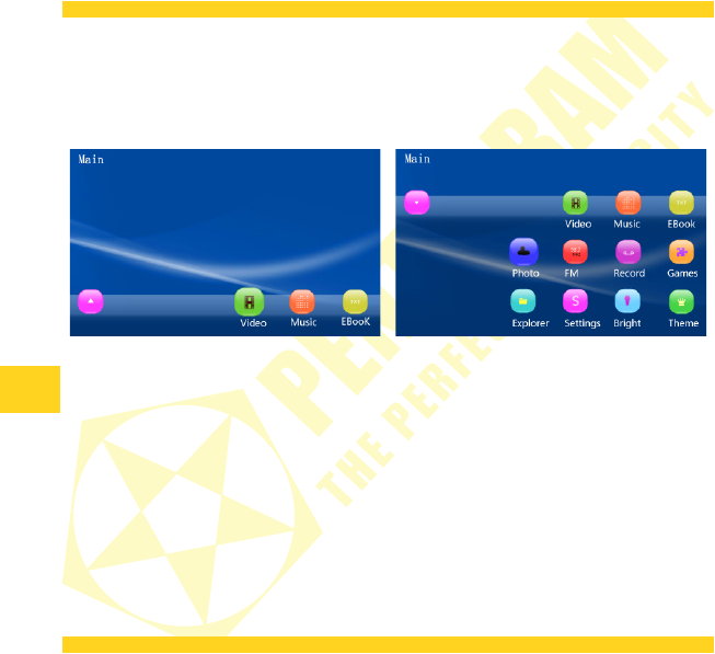To show or hide rest of the icons press button. Buttons and can be used to select main menu item and M