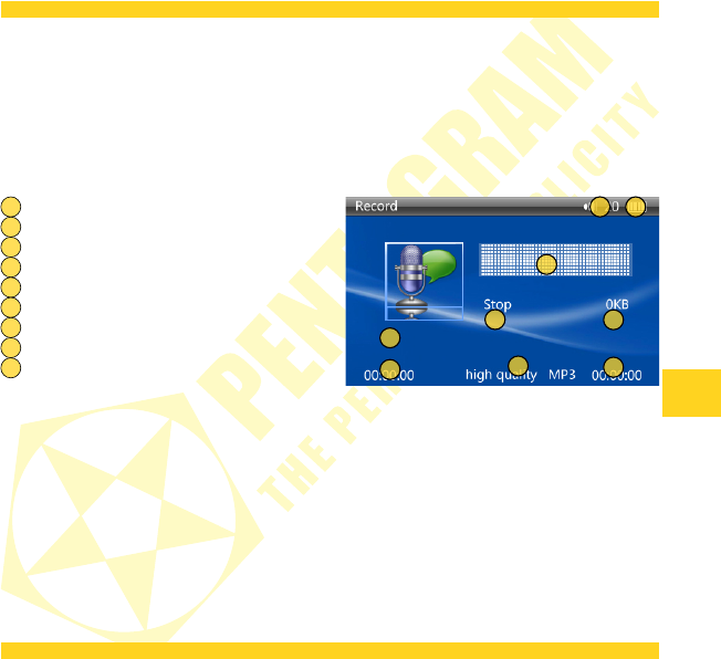 • Recording – selecting this option will bring up main Recorder mode screen.