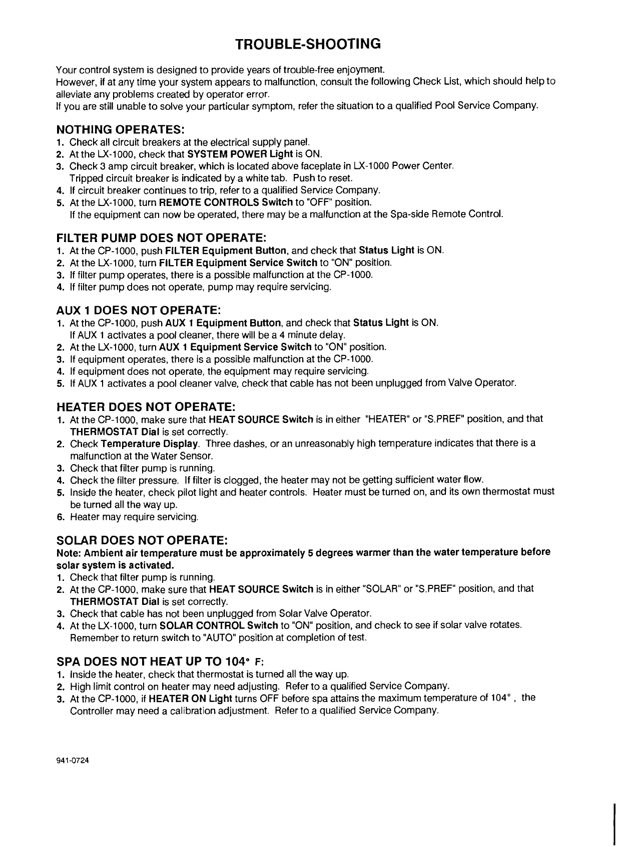 If you are still unable to solve your particular symptom, refer the situation to a qualified Pool Service Company.
