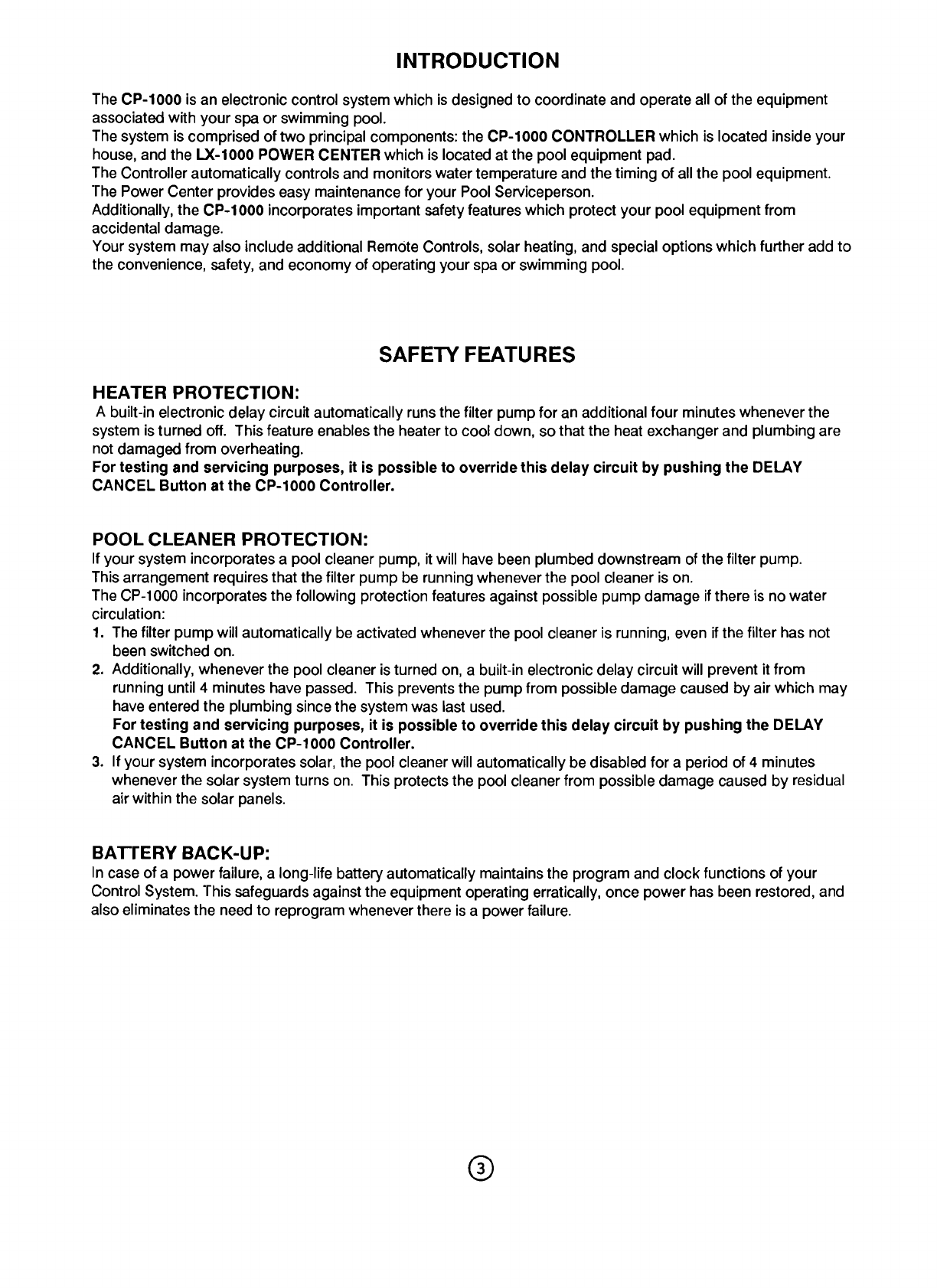 Additionally, the CP-1000 incorporates important safety features which protect your pool equipment from