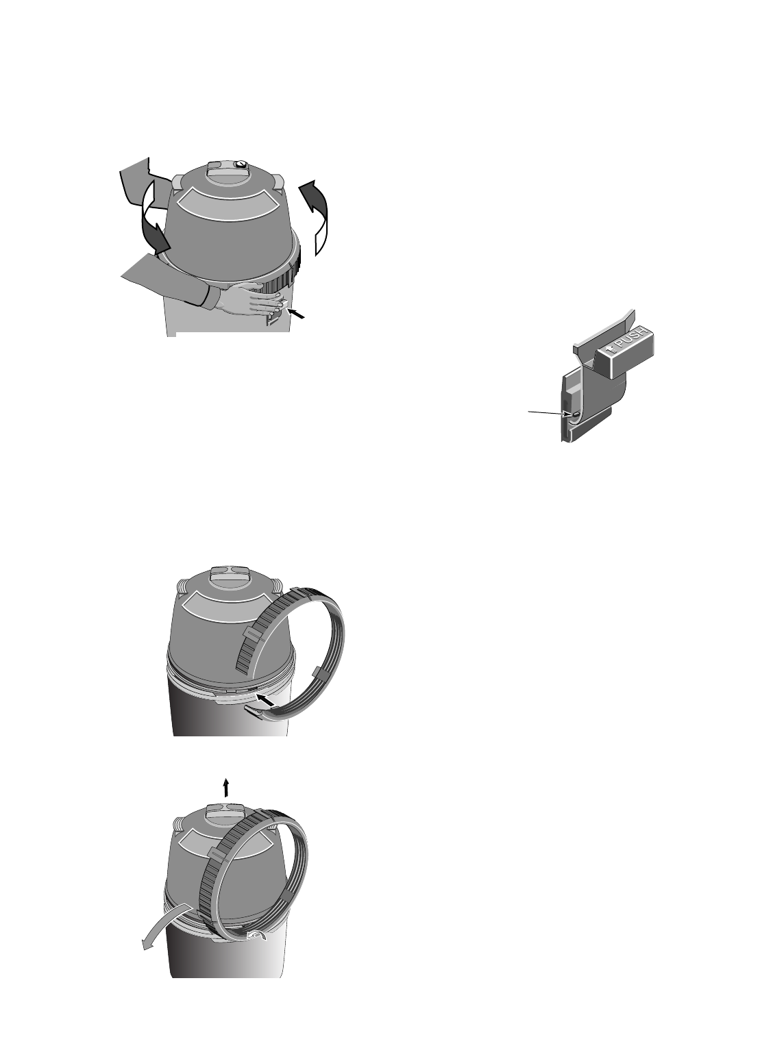 a. Press safety latch (below the ring) toward the tank to