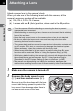 • Be sure to attach the lens mount cover and lens cap to the lens after