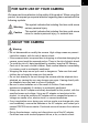 30 Precautions When Using the SD Memory Card 2 Getting Started • The SD Memory Card is equipped with a write-protect switch. Setting the switch to LOCK protects the existing data by Write-protect prohibiting recording of new data, deletion switch of existing data or formatting of the card. • Care should be taken when removing the SD Memory Card immediately after using the camera because the card may be hot.