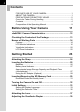 Basic Operations 41 Basic Shooting Operation ........................................................... 42 Holding the Camera............................................................................42 Letting the Camera Choose the Optimal Settings ..............................43 Selecting the Appropriate Capturing Mode for Scenes............ 47 Using the Zoom Lens .................................................................. 48 Using the Built-in Flash ..........................................