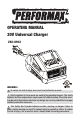 OPERATING MANUAL 20V Universal Charger 252-0912 Y BATTER R CHARGE WARNING! To reduce the risk of injury, user must read instruction manual. Safety symbols in this manual are used to flag possible dangers. The safety symbols and their explanations require your full understanding. The safety warnings do not by themselves eliminate any danger, nor are they substitute for proper accident prevention measures. This Safety Alert Symbol indicates caution, warning, or danger.