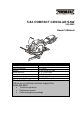 5.8A COMPACT CIRCULAR SAW 241-0943 Owner’s Manual Rating: Motor Amperage: Speed: Blade diameter: Arbor: Depth of cut @ 90°: Depth of cut @ 45°: PRODUCT SPECIFICATIONS 120 V, 60 Hz, AC 5.8 Amps 3,500 RPM (no load) 4 ½" (114.3 mm) 3/8" (9.5 mm) 1-11/16" (42.9 mm) 1-1/8" (28.