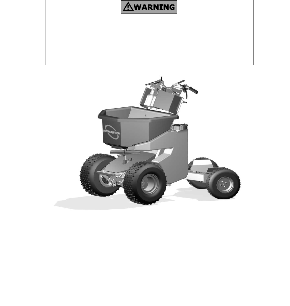 PermaGreenTM Triumph Spreader Sprayer Operator’s Manual To Avoid serious injury or death: This Triumph MUST pass a New Machine Pre-Operation Inspection prior to use. • DO NOT start the machine until instructed do so during the Pre-Operation Inspection. Read this Manual before using. ALL operators and mechanics MUST be trained.