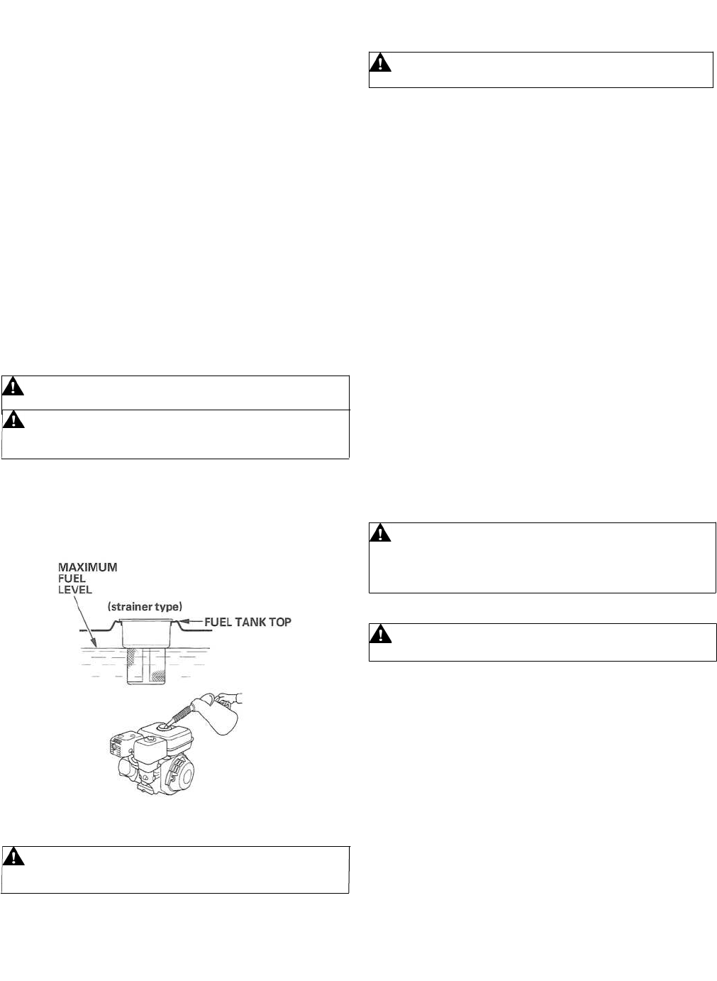 Read Safety Manual WARNING 8, Fuel Safety, before adding